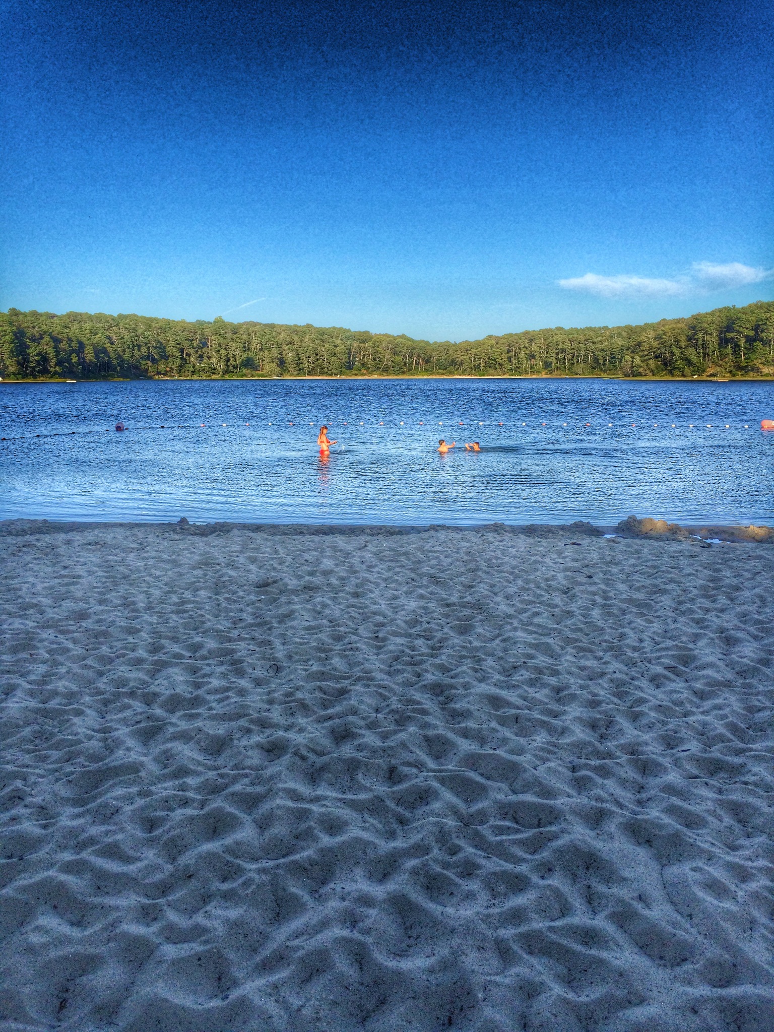 Within one hour of pulling into the driveway, we shot off to Schoolhouse Pond. A quick dip before dinner. The pond is typically empty at 6pm. The charmingly inattentive lifeguards have abandoned their high chair. Multi-generational families that gathered earlier around beach umbrellas with their feet dug into the sand have, by now, departed for dinner.